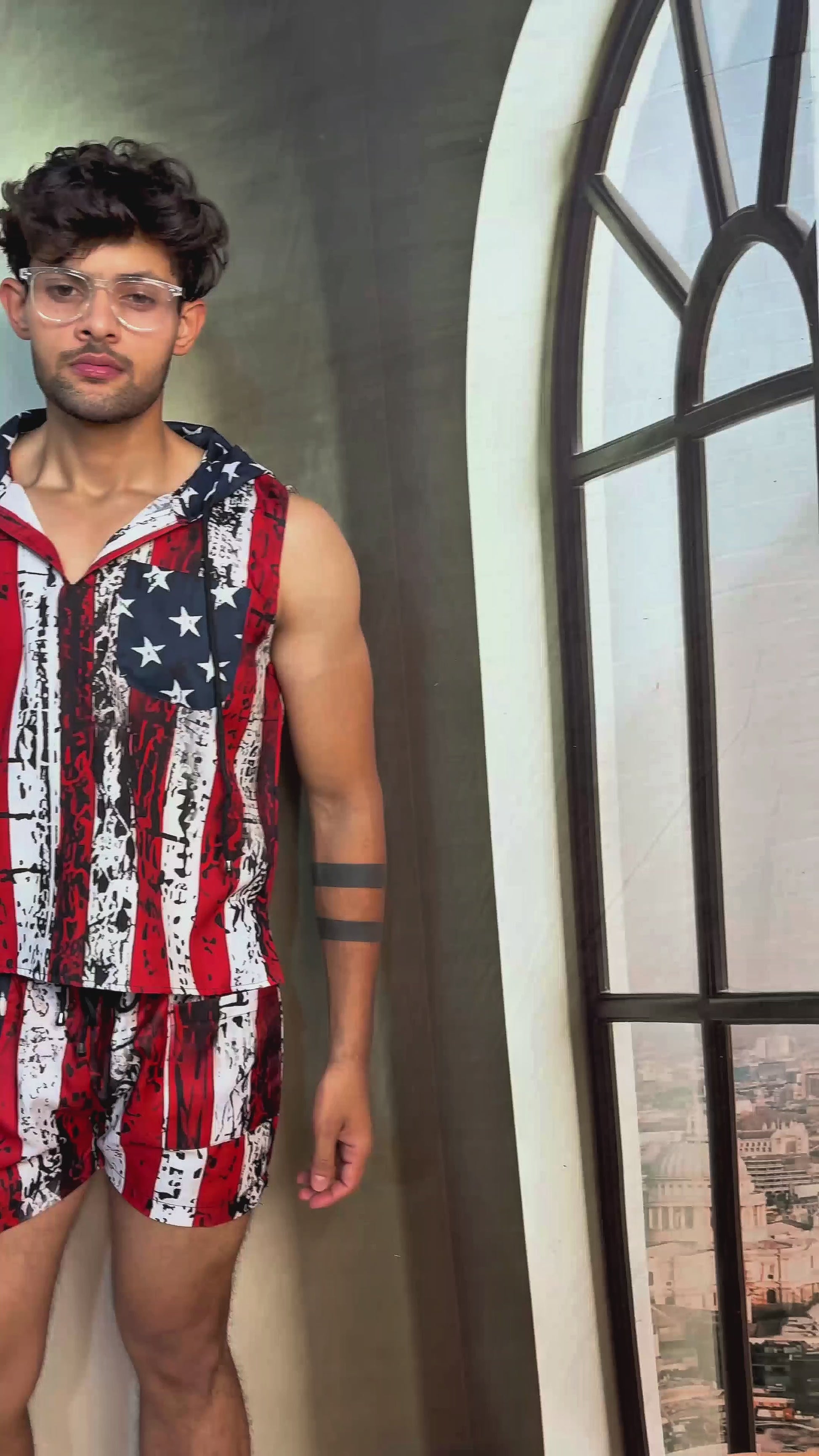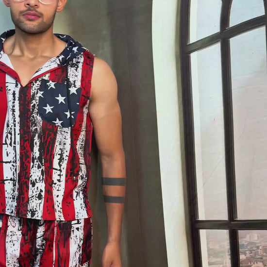 Star and Stripe Print Beach Sleeveless Co-ord Set for Men